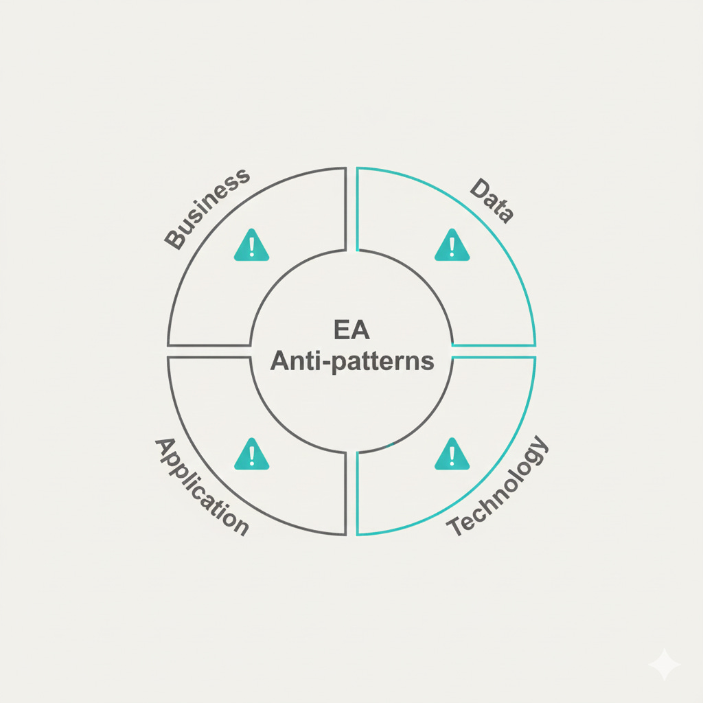 Enterprise architecture anti-patterns don’t appear in one place. They spread across layers, and each layer has its own style of failure. If you only look at apps, you’ll miss the business decision problem. If you only look at tooling, you’ll miss the data lifecycle problem.